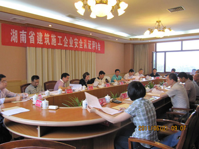 2011年6月1日,湖南省建筑施工企业安全质量标准化认证中心(以下简称省安全认证中心)在湖南宾馆召开首次安全认证社会评价会议。