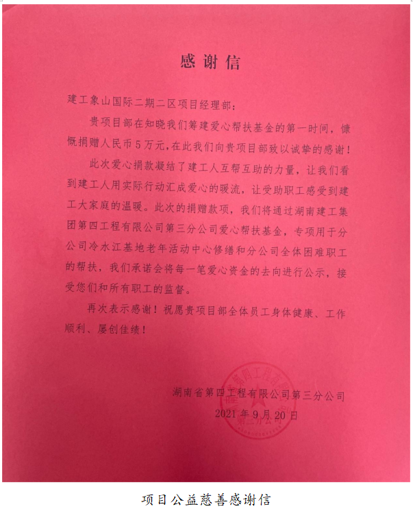 一是开展项目公益慈善活动。筹集5万元爱心帮扶基金,用实际行动汇成爱心的暖流,专项修缮冷水江基地老年活动中心和帮扶困难职工。二是与建设、监理等单位开展职工篮球赛。以篮球运动搭建各方单位沟通交流平台,充分展现了支部党员良好的精神风貌和勇于拼搏的精神。三是及时落实防疫要求。疫情期间,邀请社区医务人员,持续对项目全体在建人员进行新冠病毒核酸检测,检测覆盖率100%,顺利打赢了一场场防疫战。