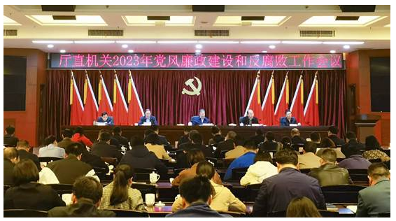 4月4日下午,省住建厅召开厅直机关2023年党风廉政建设和反腐败工作会议,深入学习贯彻二十届中央纪委二次全会和十二届省纪委三次全会精神,总结回顾厅直机关2022年党风廉政建设和反腐败工作,部署安排2023年工作。在家厅领导,驻厅纪检监察组全体同志,厅机关各处室、直属各单位全体干部职工参加会议。厅党组成员、总工程师易继红主持会议。